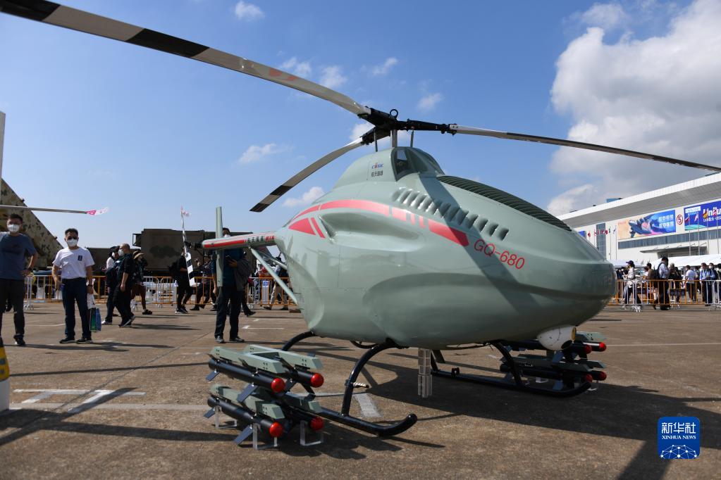 這是航展上展出的GQ-680無(wú)人直升機(11月10日攝)。