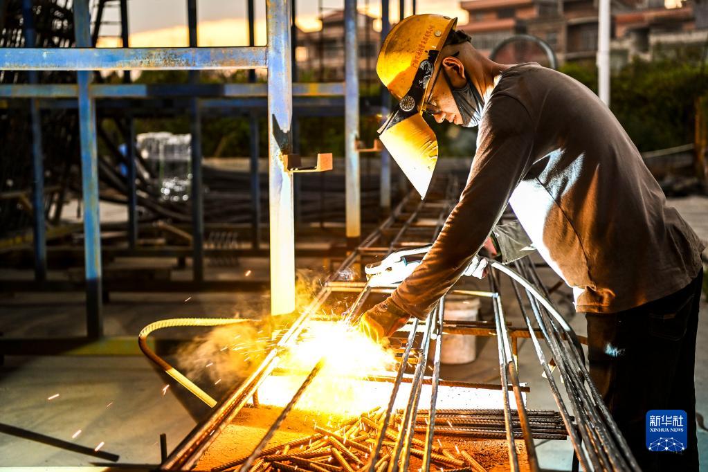11月10日,在南玉鐵路站前工程7標段附近一處制梁場(chǎng),工作人員在焊接鋼筋構件。