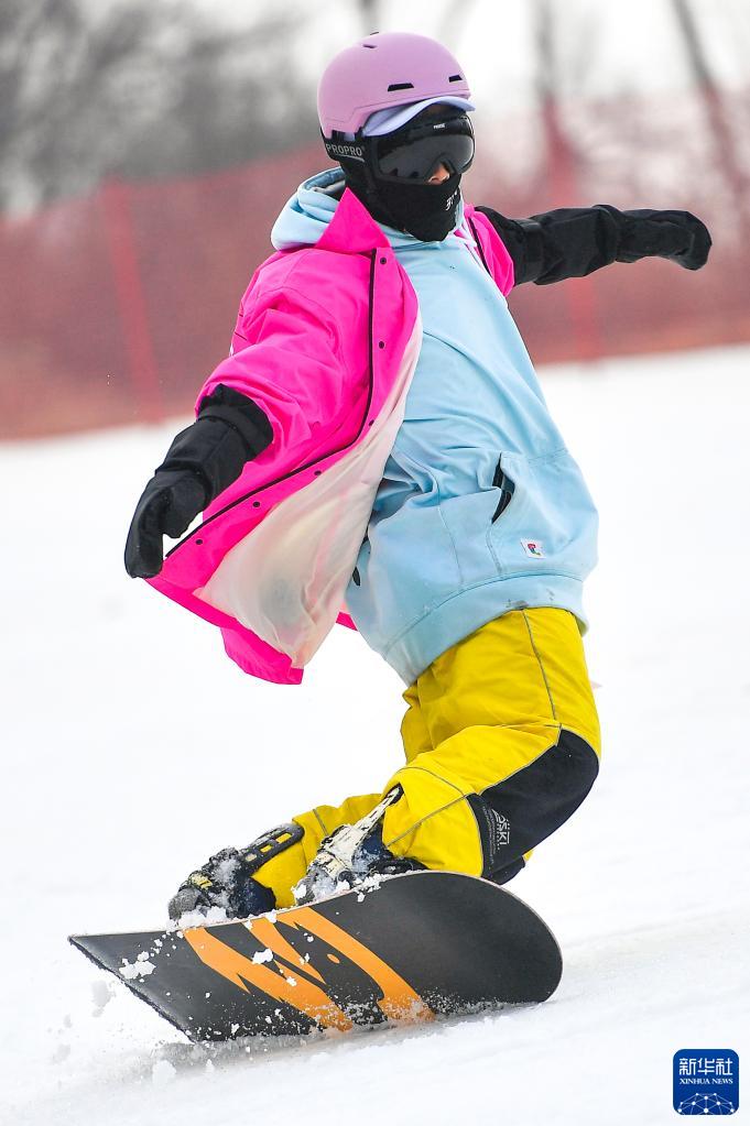 11月11日,滑雪愛(ài)好者在廟香山滑雪場(chǎng)滑雪。