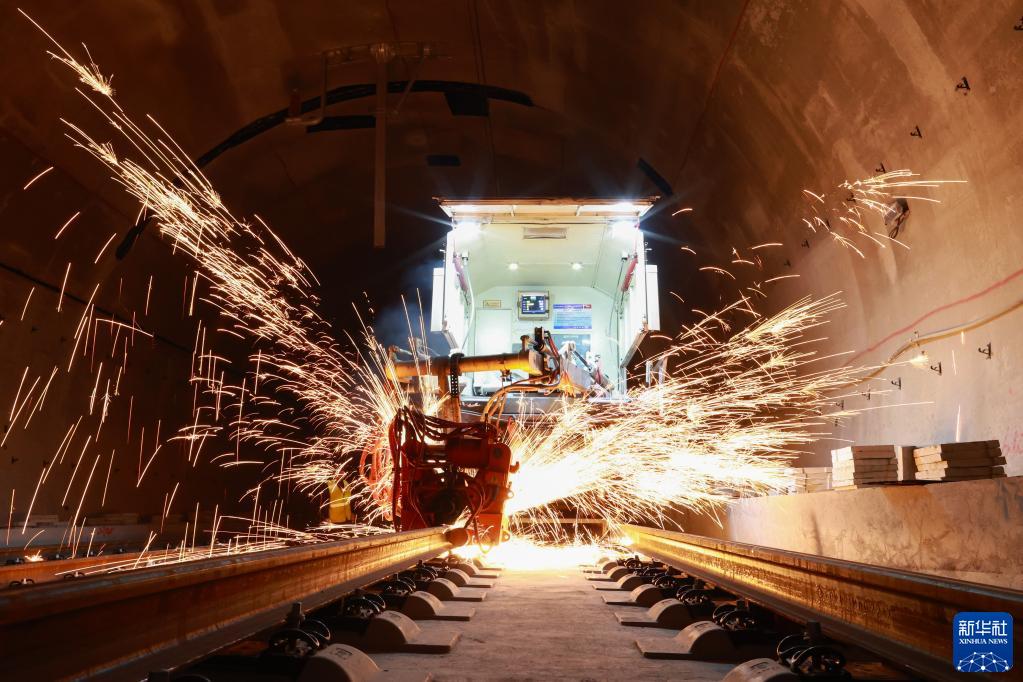 11月11日,中鐵一局員工在貴南高鐵貴州獨山段一條隧道內施工。