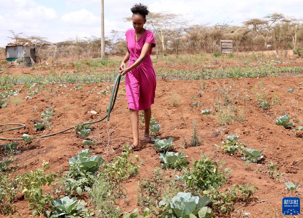 11月10日,一位居民在肯尼亞基姆卡用水澆菜地。