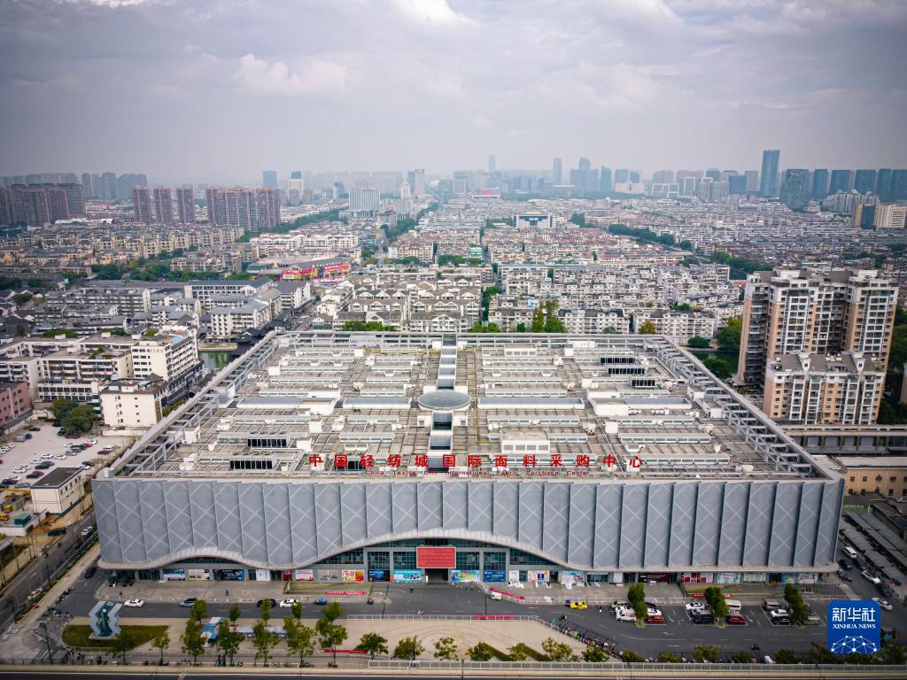 這是11月11日拍攝的中國輕紡城國際面料采購中心(無(wú)人機照片)。