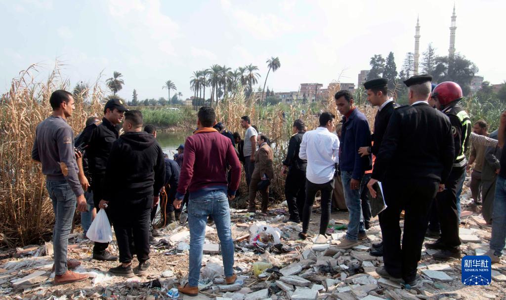 11月12日,人們聚集在埃及達卡利亞省的小巴墜河事故現場(chǎng)。