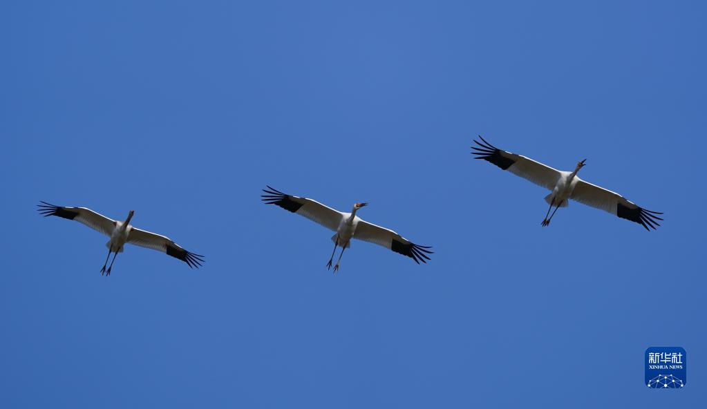 11月10日,白鶴在南昌高新區五星白鶴保護小區飛翔。