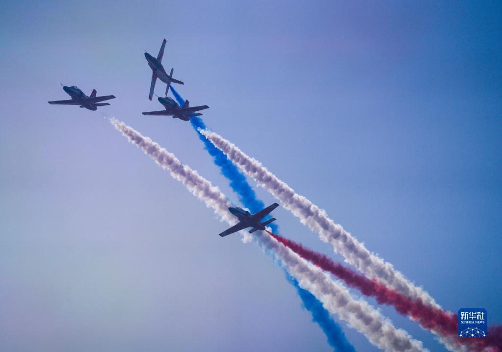 11月13日,第十四屆中國航展閉幕當天,空軍航空大學(xué)“紅鷹”飛行表演隊進(jìn)行飛行表演。