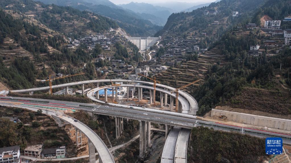 建設中的雷榕高速雷山互通(無(wú)人機照片,11月15日攝)。