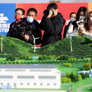 11月16日,參加開(kāi)工儀式的媒體記者在拍攝鐵礦項目沙盤(pán)。