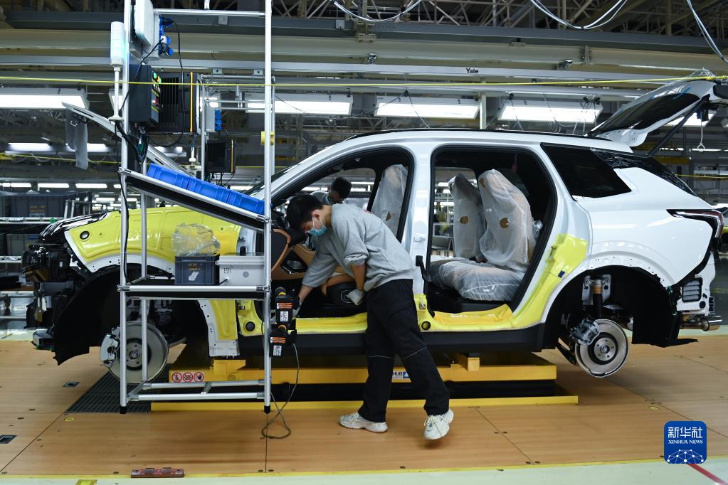 11月19日,工人在領(lǐng)克汽車(chē)寧波梅山工廠(chǎng)的總裝車(chē)間作業(yè)。