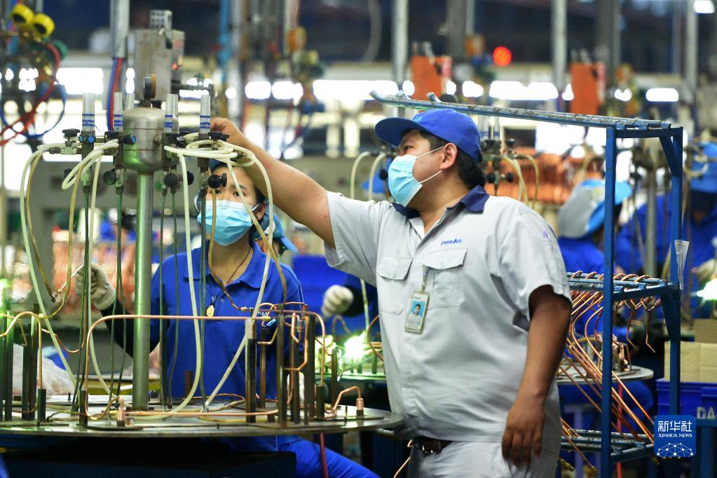 11月8日,在位于泰國羅勇府的泰中羅勇工業(yè)園,泰國工程師那塔武在盾安金屬(泰國)有限公司生產(chǎn)線(xiàn)上工作。
