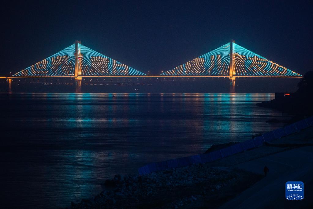 11月20日,湖北武漢長(cháng)江二橋為世界兒童日亮燈。