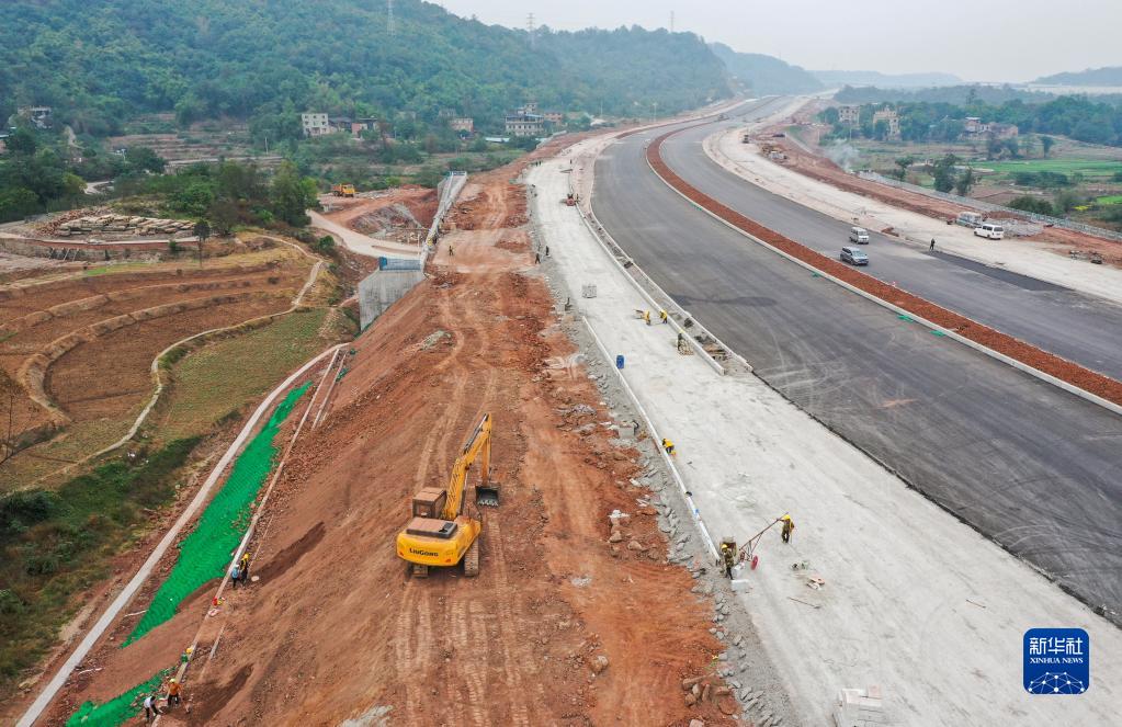 這是11月21日拍攝的重慶科學(xué)大道二期工程一標段項目施工作業(yè)現場(chǎng)(無(wú)人機照片)。