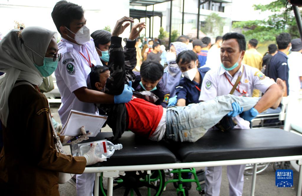 11月21日,醫務(wù)人員在印度尼西亞西爪哇省展玉協(xié)助轉運傷者。