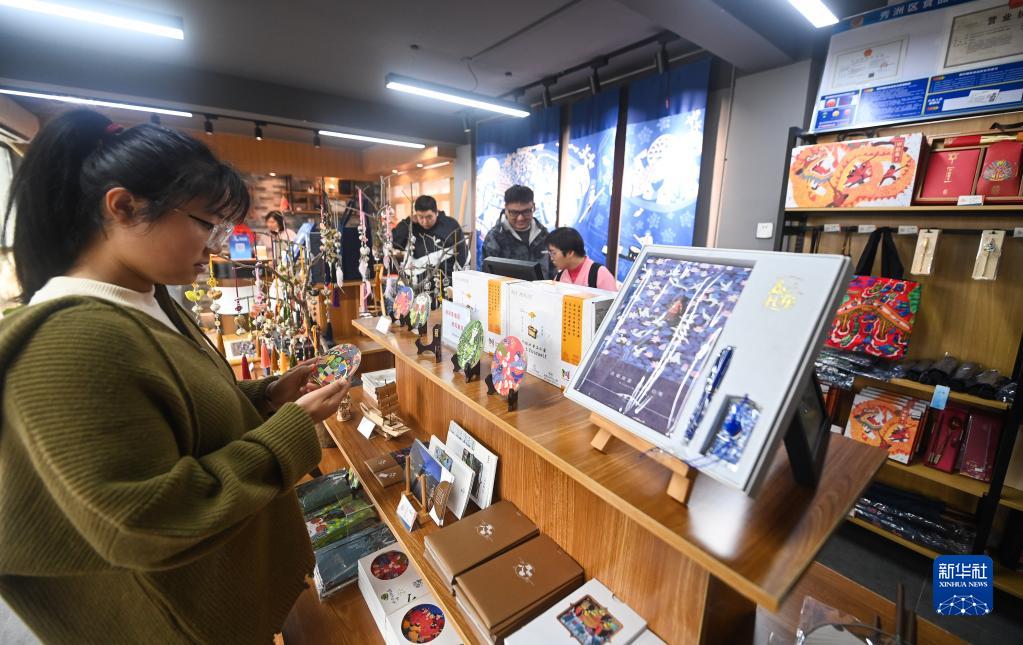 11月22日,游客在勝豐村菱瓏灣的文創(chuàng )商店選購特色旅游產(chǎn)品。