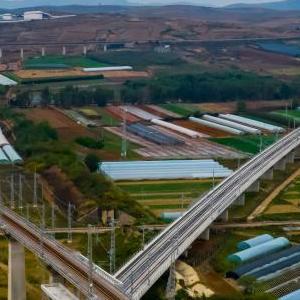 彌(勒)蒙(自)高鐵位于云南省紅河哈尼族彝族自治州境內,正線(xiàn)長(cháng)約107公里,設計開(kāi)行旅客列車(chē)時(shí)速目標值為250公里,目前工程建設進(jìn)展順利,沿線(xiàn)車(chē)站建設基本完成。