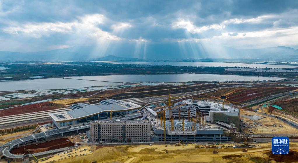 11月24日拍攝的建設中的彌蒙高鐵紅河站(無(wú)人機照片)。