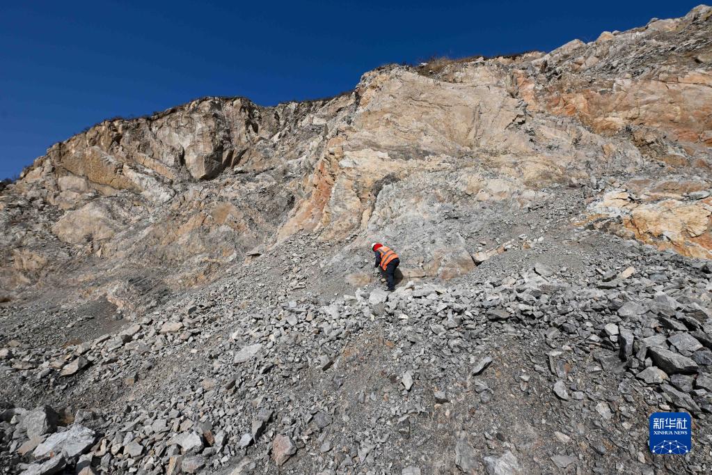 天津華北地質(zhì)勘查局地災防治工作組成員在天津市薊州區一座廢棄礦山上測量坡面坡度(11月25日攝)。