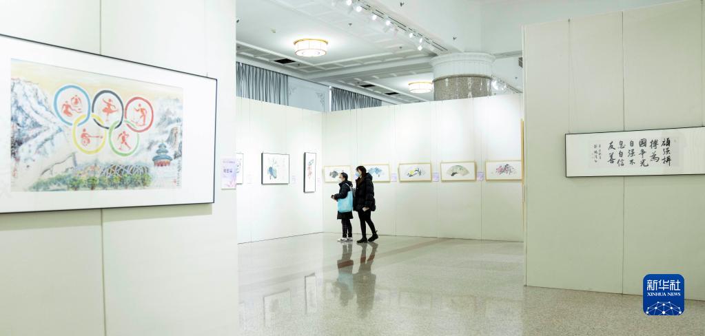 12月3日,觀(guān)眾在北京民族文化宮舉辦的共享芬芳·共鑄美好——“仁美”書(shū)畫(huà)攝影展上參觀(guān)。