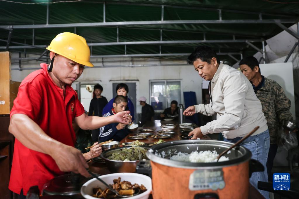 12月1日,海南殘服再生資源有限公司員工在吃午飯。