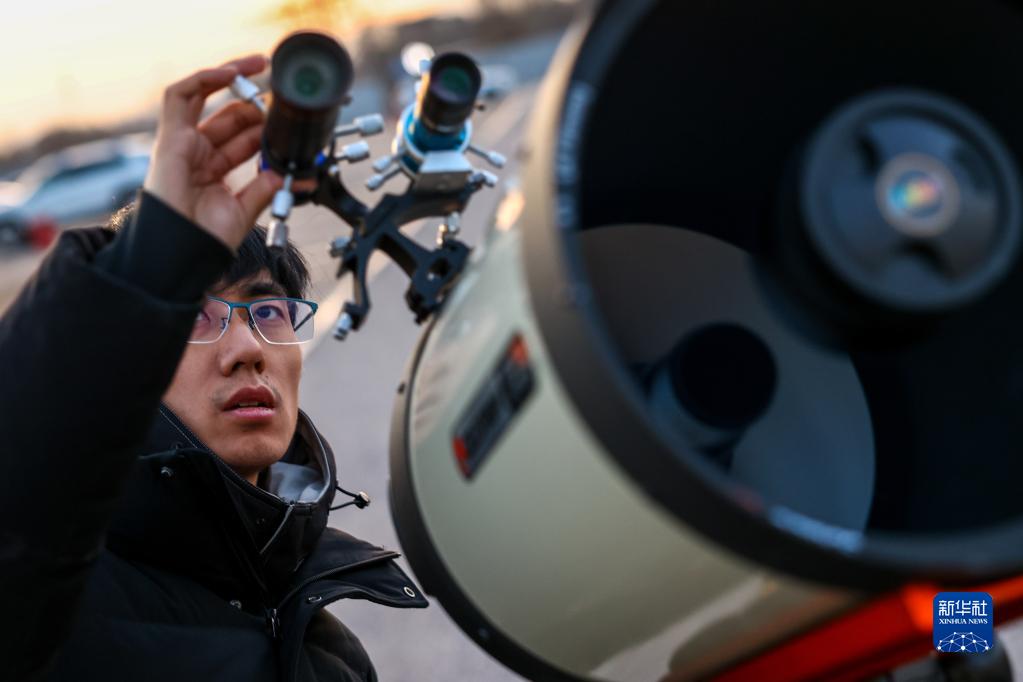 12月4日,在北京昌平一處拍攝地,劉博洋組裝調試追蹤拍攝設備,計劃拍攝即將返回地球的神舟十四號載人飛船。