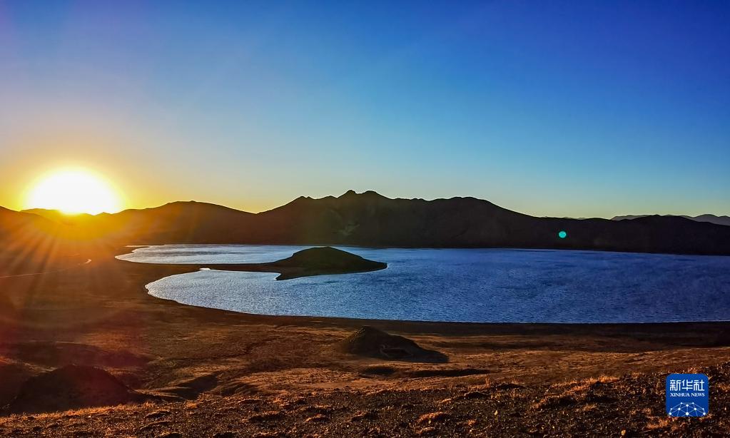 這是夕陽(yáng)下的羊卓雍錯(12月11日攝)。