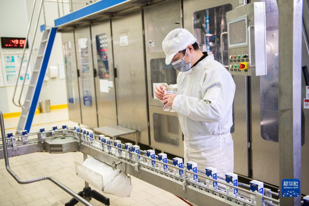 12月13日,在皇氏集團湖南優(yōu)氏乳業(yè)有限公司飲品生產(chǎn)車(chē)間,工作人員在檢查產(chǎn)品質(zhì)量。