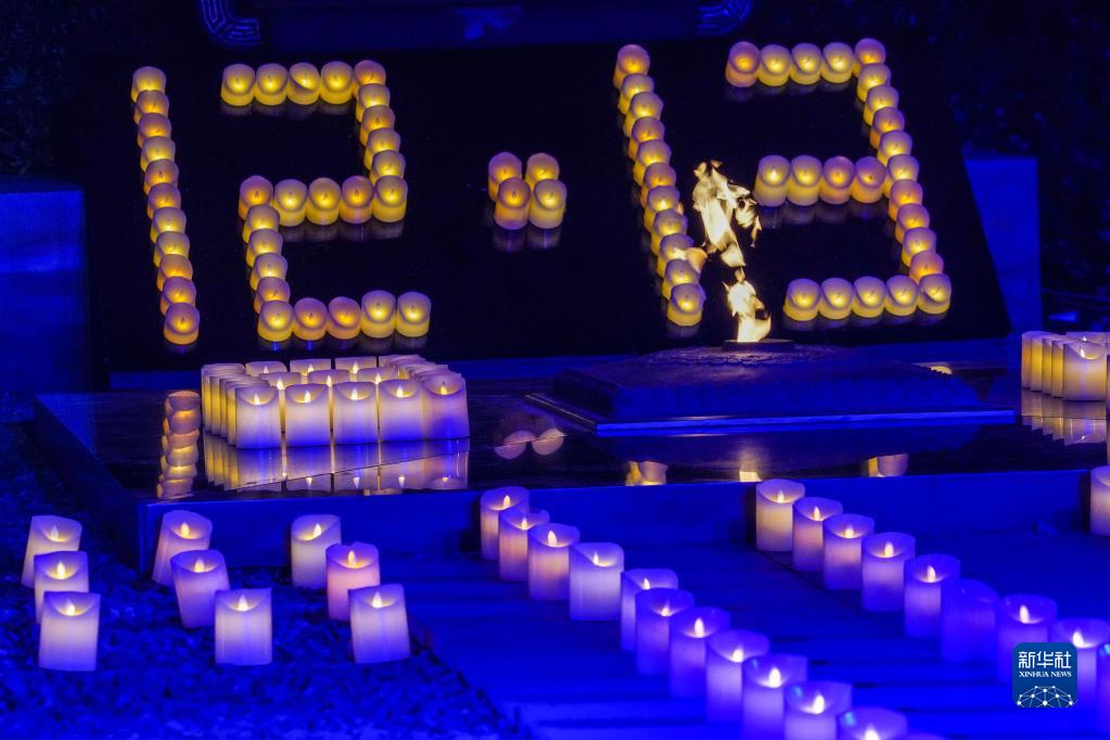 這是12月13日在侵華日軍南京大屠殺遇難同胞紀念館拍攝的“燭光祭”活動(dòng)現場(chǎng)。