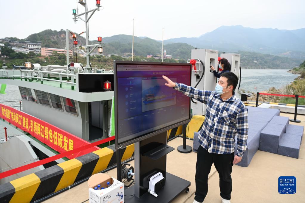 當日,福建“電動(dòng)閩江”首個(gè)電動(dòng)船舶直流充電示范場(chǎng)景在閩江水口壩區的海事碼頭正式啟用。它的投用將進(jìn)一步加快福建內河船舶綠色智能發(fā)展,提升閩江航運質(zhì)量效益。新華社記者 林善傳 攝