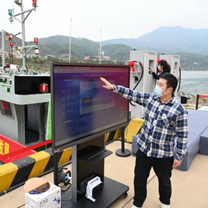 12月13日,工作人員在介紹同步上線(xiàn)運營(yíng)的福建省電動(dòng)船舶信息化平臺。