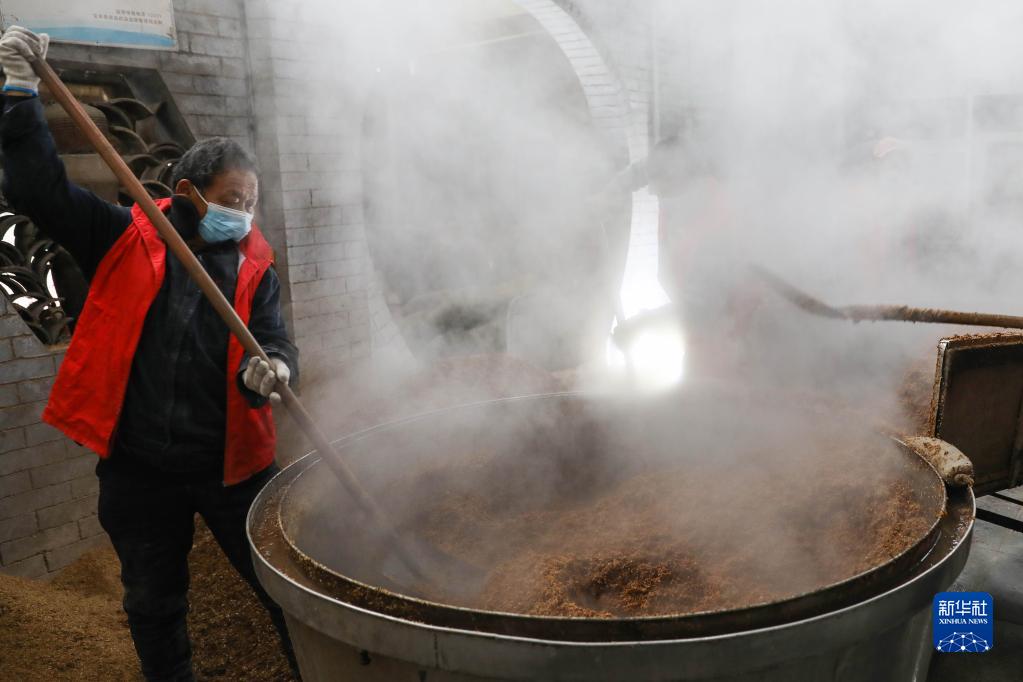 寒冬時(shí)節,河南省寶豐縣釀酒專(zhuān)業(yè)村石橋鎮邢莊村進(jìn)入釀酒繁忙季。村里10余家釀酒作坊按照制曲、選料、蒸煮、攤晾、封窖等傳統古法工藝釀酒,鄉村里彌漫著(zhù)濃郁的酒香。