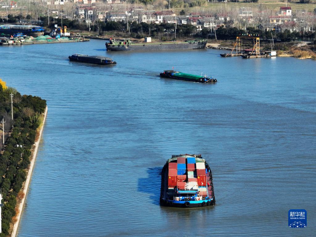 入冬以來(lái),在京杭大運河江蘇揚州段,裝載煤炭、鋼材、建材等貨物的船舶在航道上有序航行,來(lái)往如梭,運河上呈現一派繁忙景象。