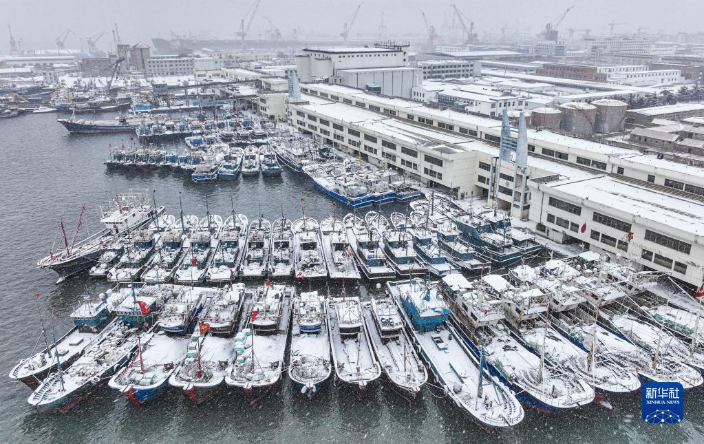 受強冷空氣影響,山東省榮成市近日出現大風(fēng)降雪天氣。出海作業(yè)漁船紛紛??繚O港,躲避寒潮、風(fēng)雪。