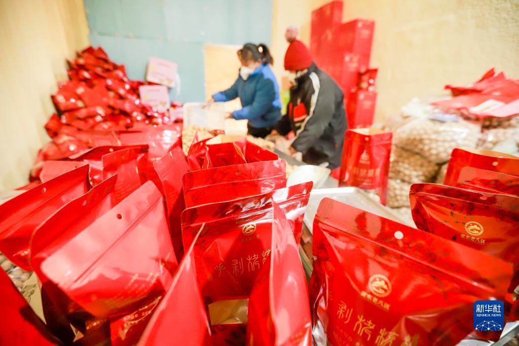 12月23日,農民在遵化市東舊寨鎮石橋頭村一家核桃專(zhuān)業(yè)合作社的車(chē)間整理熟核桃,準備裝袋。