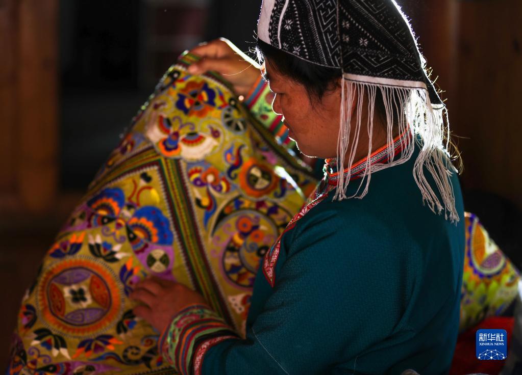 2022年5月2日,村民在貴州省榕江縣塔石鄉烏吉苗寨檢查苗族繡品。烏吉苗寨是黔東南州苗族蠟染刺繡非物質(zhì)文化遺產(chǎn)生產(chǎn)性保護示范基地。近年來(lái),當地積極挖掘苗族刺繡、蠟染等“非遺”技藝,帶動(dòng)村民從事苗族傳統刺繡、蠟染等手工制品生產(chǎn)與外銷(xiāo),實(shí)現“非遺”傳承與市場(chǎng)對接,走出一條傳統“非遺”助力鄉村振興的新路子。