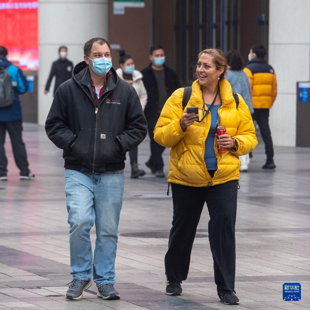 12月23日,外國游客在重慶解放碑商圈游玩。