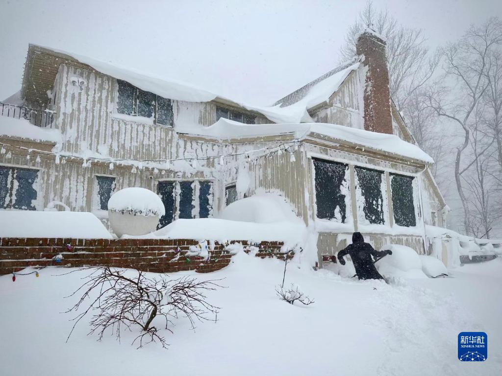 12月24日,美國紐約州伊利縣阿默斯特地區的居民在清理積雪。