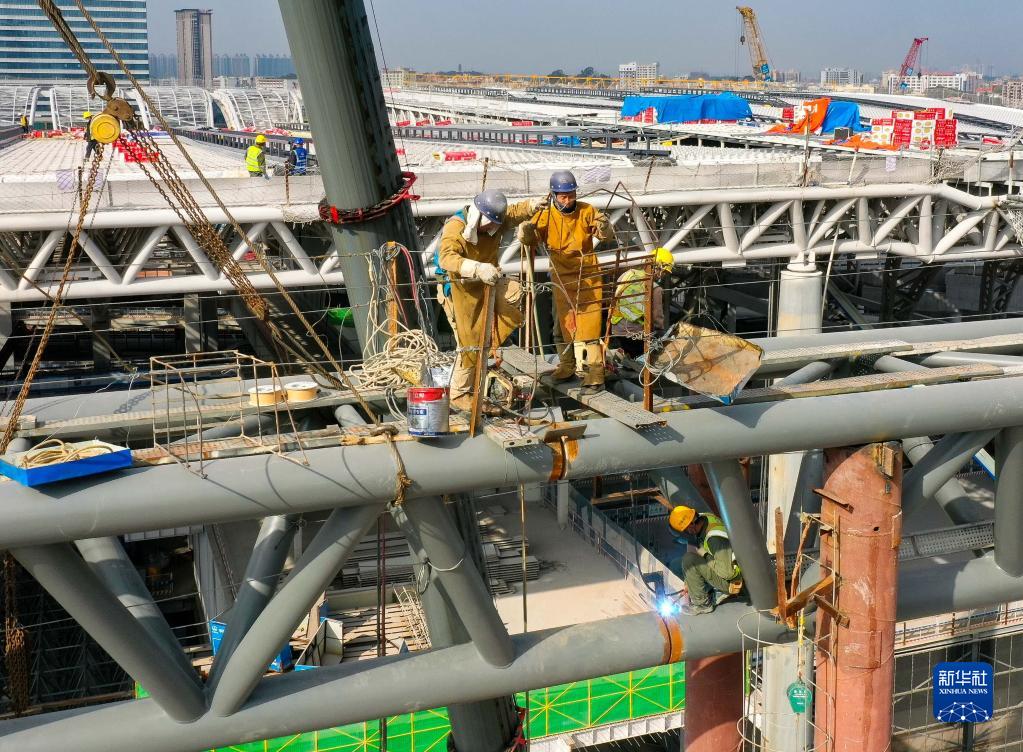 12月27日,建設者在廣州白云火車(chē)站項目建設現場(chǎng)進(jìn)行二期主體結構施工。