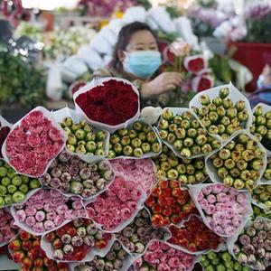 12月27日,昆明斗南花市商家在整理待售的鮮花。