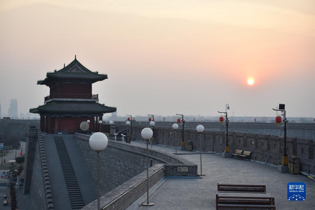 1月1日,在河北省石家莊市正定縣南城門(mén)拍攝的新年初升的太陽(yáng)。