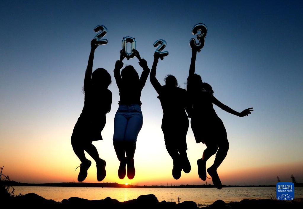 2022年12月31日,人們在印度博帕爾的海邊迎接新年。
