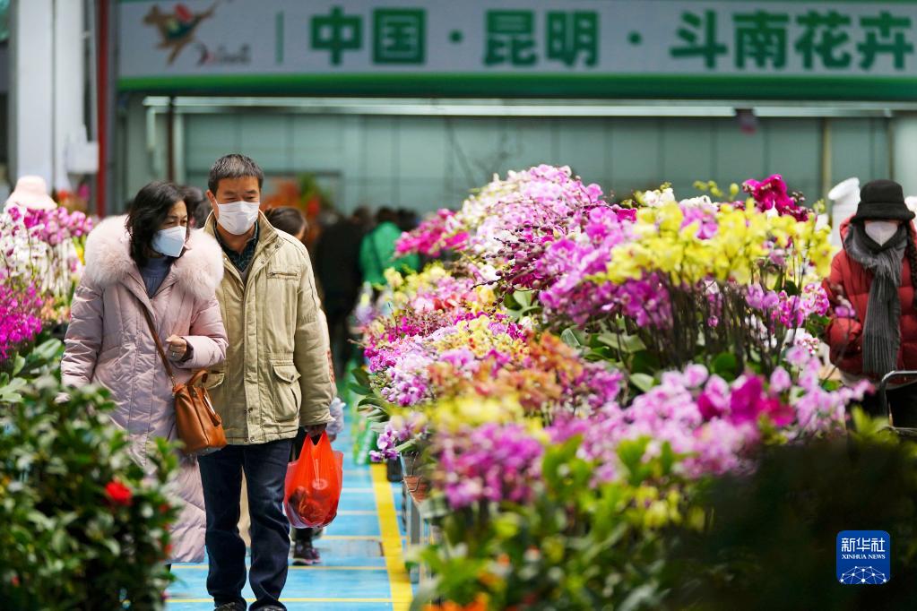 隨著(zhù)春節臨近,云南省昆明市的花卉市場(chǎng)迎來(lái)銷(xiāo)售旺季。不少市民來(lái)到花卉市場(chǎng)選購鮮花,迎接佳節的到來(lái)。