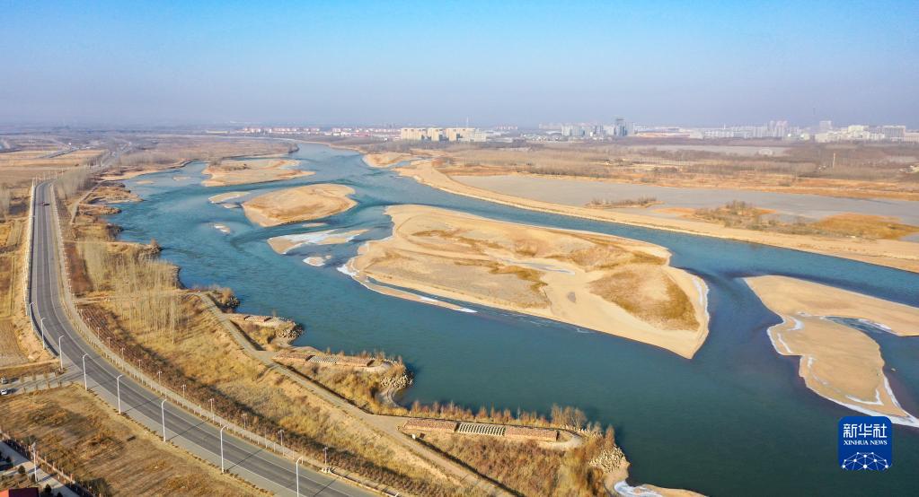 這是2022年12月29日拍攝的位于寧夏中衛市境內的黃河景觀(guān)(無(wú)人機照片)。
