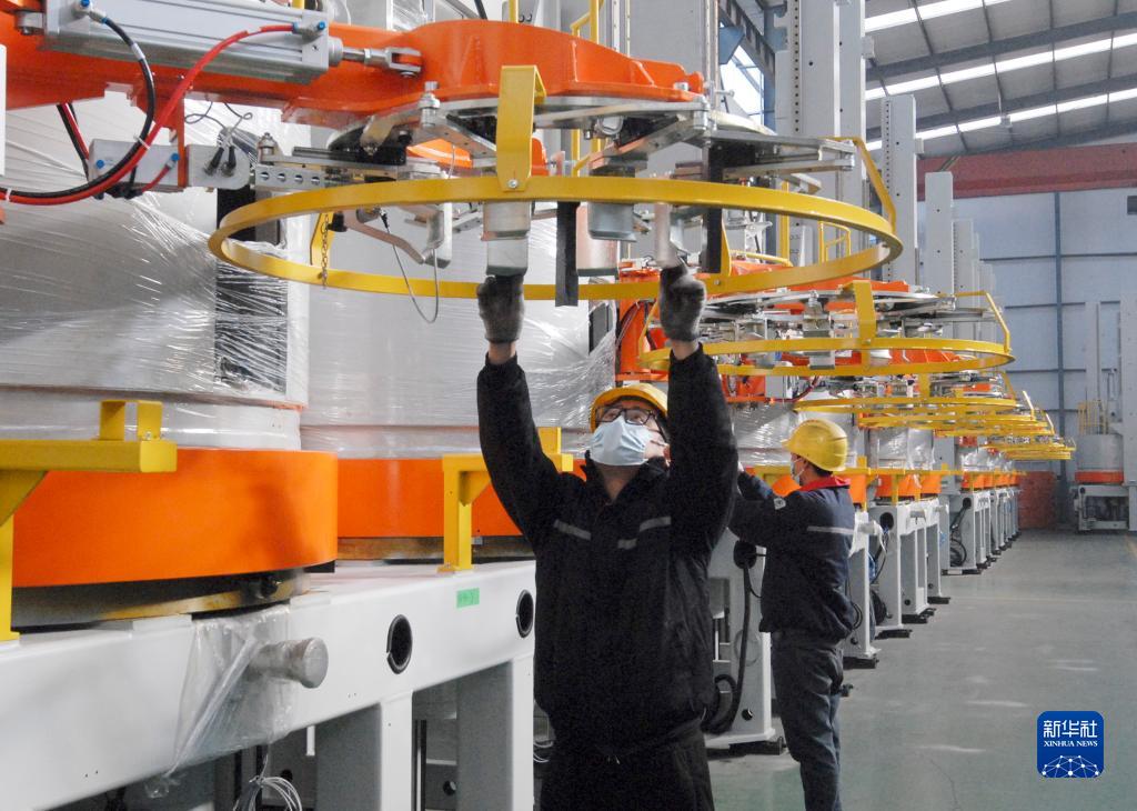 1月3日,工人在山東省青島市即墨區的一家塑膠公司車(chē)間內檢測設備。