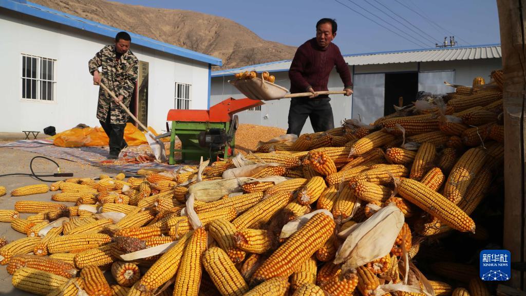 1月4日,甘肅省定西市安定區新集鄉景坪村村民在給玉米脫粒。