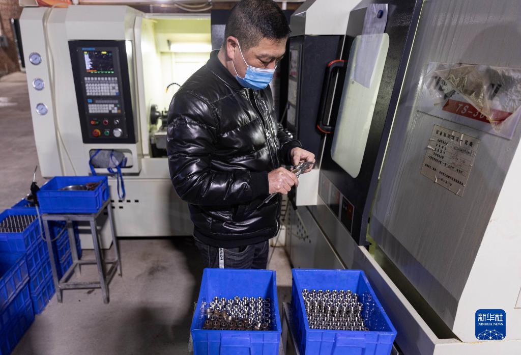 1月4日,在四川省會(huì )東縣小岔河特色產(chǎn)業(yè)園區一家汽車(chē)零部件企業(yè)的生產(chǎn)車(chē)間,一名在此就業(yè)的移民群眾在檢測液壓不銹鋼螺帽規格。