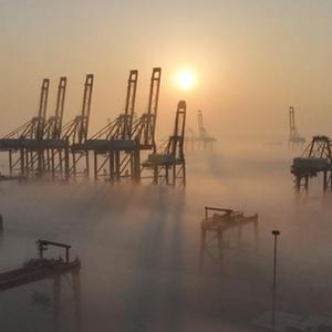 河北唐山港京唐港區出現平流霧景觀(guān)