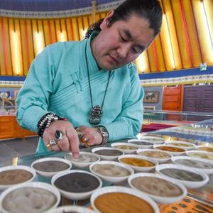 內蒙古錫林郭勒盟正藍旗位于渾善達克沙地腹地,生活于此的80后蒙古族青年阿拉騰畢力格取沙為材,進(jìn)行沙畫(huà)藝術(shù)作品創(chuàng )作。他對渾善達克沙地中顏色各異的沙粒進(jìn)行淘洗、篩選、清理雜質(zhì)、曬干等操作后,加上用糯米汁、牛角等材料熬制而成的天然膠水,就能使各色沙粒在充分粘貼的情況下,依然保持其色彩。他的沙畫(huà)作品色彩自然、造型古樸,獨具特色。
