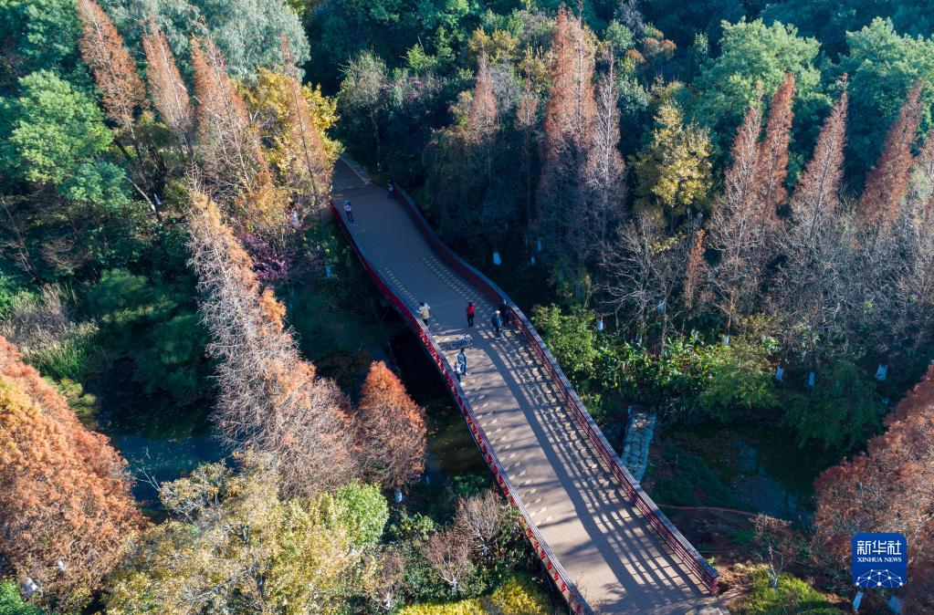 近期,云南省昆明市海洪濕地公園的水杉迎來(lái)觀(guān)賞季,吸引不少游客前來(lái)游覽。昆明海洪濕地公園位于滇池北岸、盤(pán)龍江入湖口西側,是滇池的一道湖濱生態(tài)屏障。