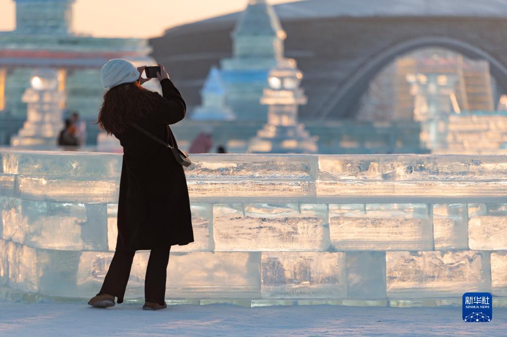 1月5日,游客在哈爾濱冰雪大世界園區游玩。