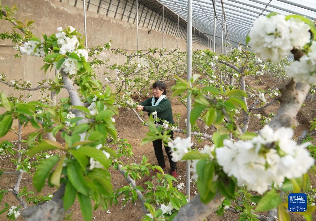 河北秦皇島:櫻桃樹(shù)花芬芳 農民管護忙