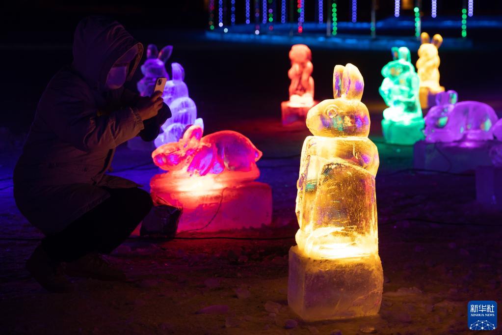 1月6日,游客在漠河市一處冰雪樂(lè )園拍照留念。